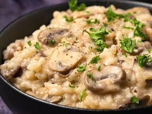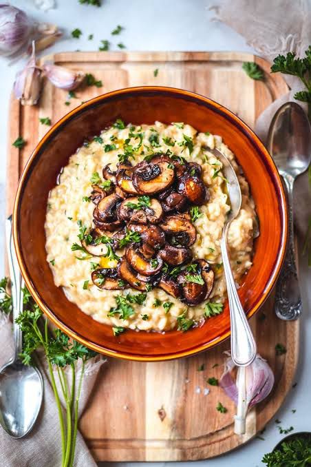 Move the cooked mushrooms to the risotto and mix to warm through for a couple of moments. Eliminate from the intensity, and afterward mix in vegetarian cheddar, if utilizing. Taste for flavors, adding a touch of salt depending on the situation and a dark pepper to prepare. Decorate with new slashed parsley and serve right away.
