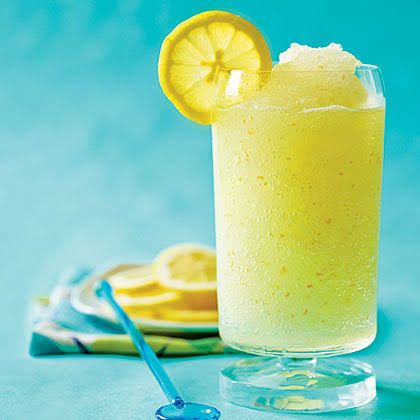 In a blender, mix ice, lemonade, limoncello, vodka, and 1 ounce lemon syrup on fast until a slushy consistency structures.